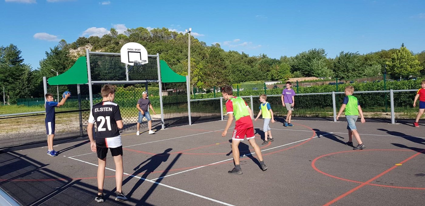 Buiten, (net naast )de camping en nieuw geïnstalleerd in 2020, biedt een multisportterrein de sporters de mogelijkheid om zich uit te leven; volleybal, basketbal, voetbal, met een dagelijks door de camping georganiseerd toernooi.